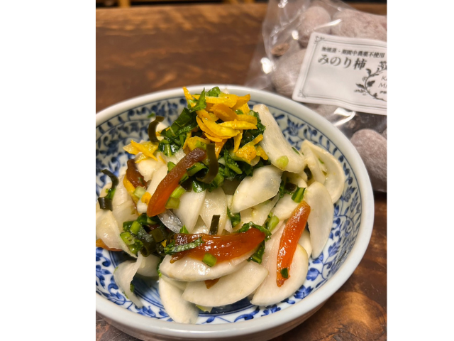 かぶ、かぶ菜、昆布、ゆず、みのり柿と和えて。